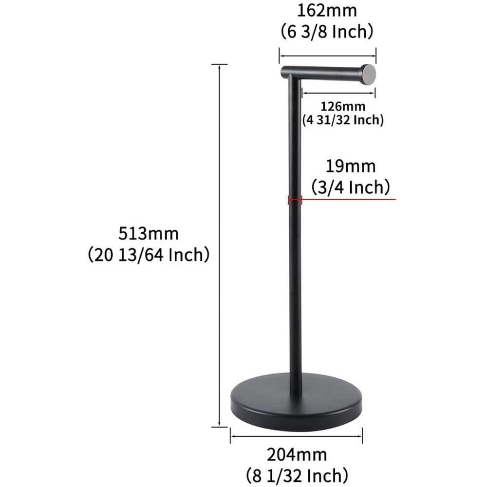 - Fits most rolls: maximum toilet tissue roll length: 4.9 in./126 mm (fits most regular/large size rolls), round base: 8 in. (204 mm) in diameter, total height: 20.2 in. (513 mm), open-sided design makes roll changing quick and easy, a short pin at the end of the arm prevents paper roll from slipping off