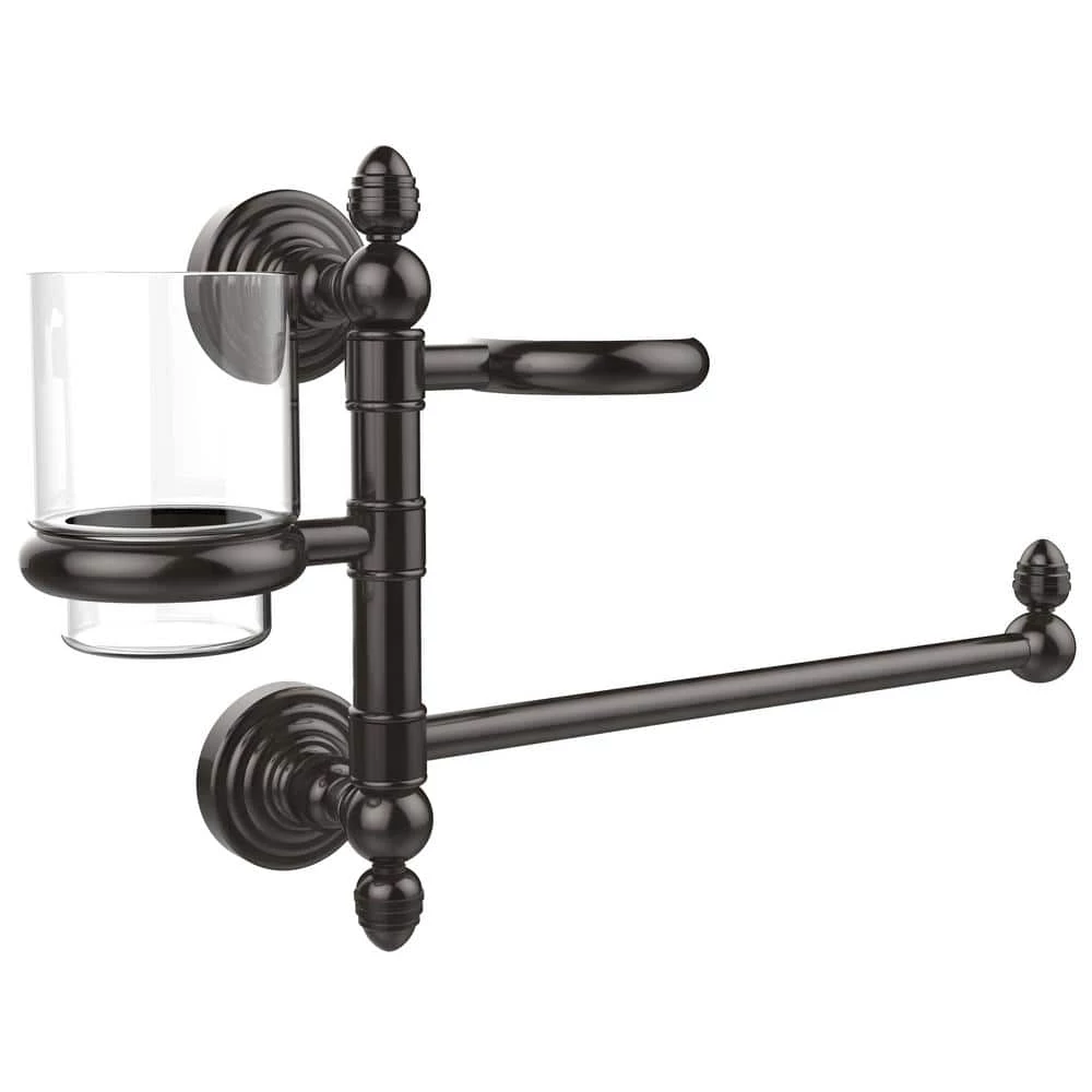 This three arm multi-use bar is the best organizational addition to your bathroom. With limited space and a clean bathroom countertop in mind, we created a 3 tier bar that is able to securely hold your important and most used items that tend to clutter the bathroom and/or vanity. Great for hair dryer, tumbler, soap dish or any combination of items that will fit in the accessory ring.