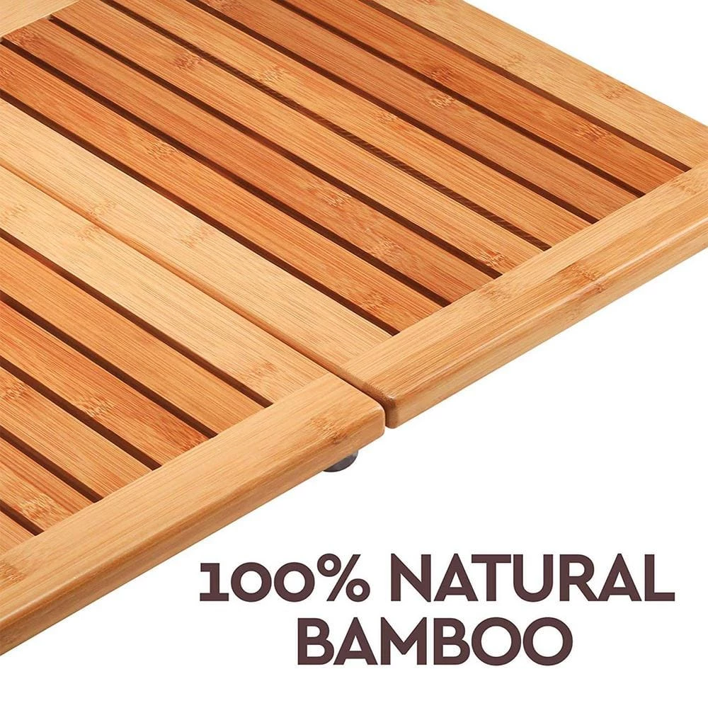 The Bambusi floor shower mat gives your bathroom a contemporary look, bringing your space a mix of nature and style. It allows your feet to dry before you step away from your shower or tub. Its versatile design makes it perfect for outdoor, indoor, or as a decorative piece. Designed in the USA, it measures 18″ x 24″ inches and now has a foldable feature to make it easy to store and easy to carry. It comes with 6 soft pads which are securely screwed on to prevent from sliding while at the same time protect and stay firmly on the floor. This shower mat is made with 100% Moso bamboo, a renewable resource material that is eco-friendly, sturdy, and durable to last for years. It is brought to a flawlessly smooth finish to eliminate splinters and doesn’t warp or crack like other woods and continue to serve you for way longer. Also, Moso bamboo is low-maintenance and needs only warm water & brief air drying to clean and air dry it after each use.