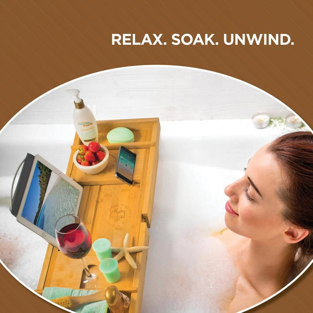 - Let the relaxing begin – this wooden bathtub caddy makes you stay longer unwinding and relaxing in the bath, modern bathtubs don’t provide much space to bring all your favorites with you, with Bambsi bathtub tray, you can soak in hot water and be worriless about your phone or iPad dropping into the water to unwind during the weekend or after a long day at work
