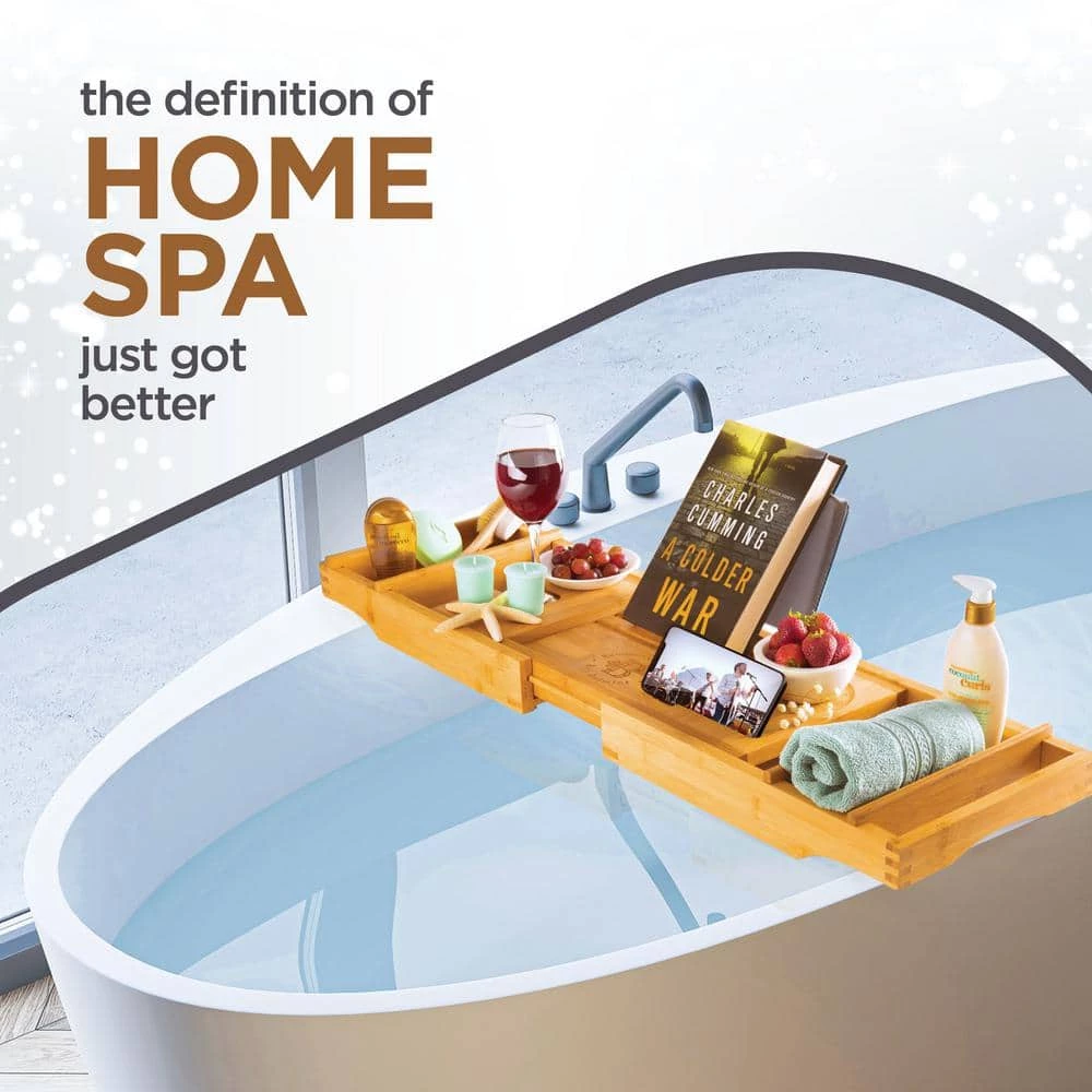 - Adjustable to fit in any bathtub – whether you own a large roman tub, alcove bathtub or free-standing tub, this bath caddy tray features extendable handles that extends from 29 in. to 43 in. which makes it convenient for any bathtub size, it’s also designed to comfortably accommodate a couple in the tub so you can bring a romantic date night, honeymoon or anniversary