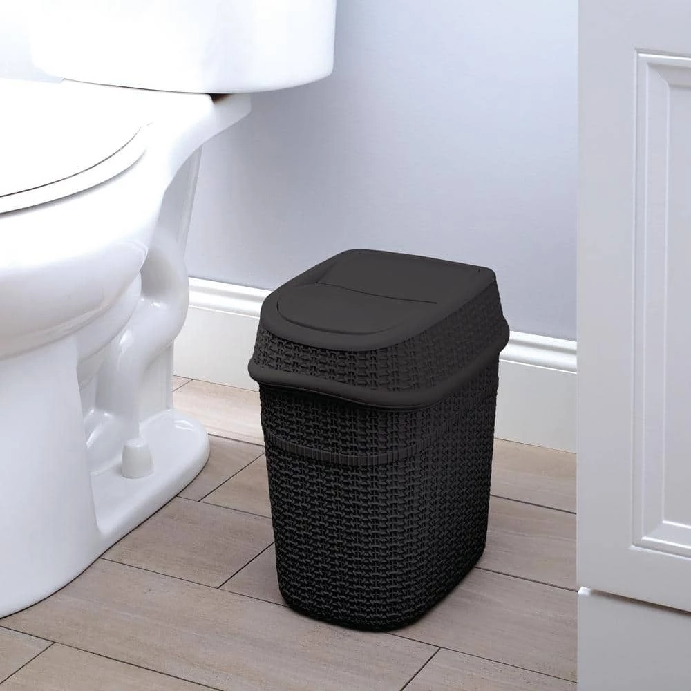 Add a contemporary look to your home with the Bath Bliss 9.5 l sailor knot swing top waste bin. The sailor knot design makes for a functional and decorative piece for your bathroom, office, or dorm. Designed with a 9.5 l capacity and a convenient swing top lid. The lid trop odors and prevents messes and overflow. When the waste bin is full the whole top comes off to easily empty the bin. It is a great addition to any small space. Never worry about the look of trash again with this Bath Bliss waste bin to hide the mess. A must have for every room to keep your home clean.