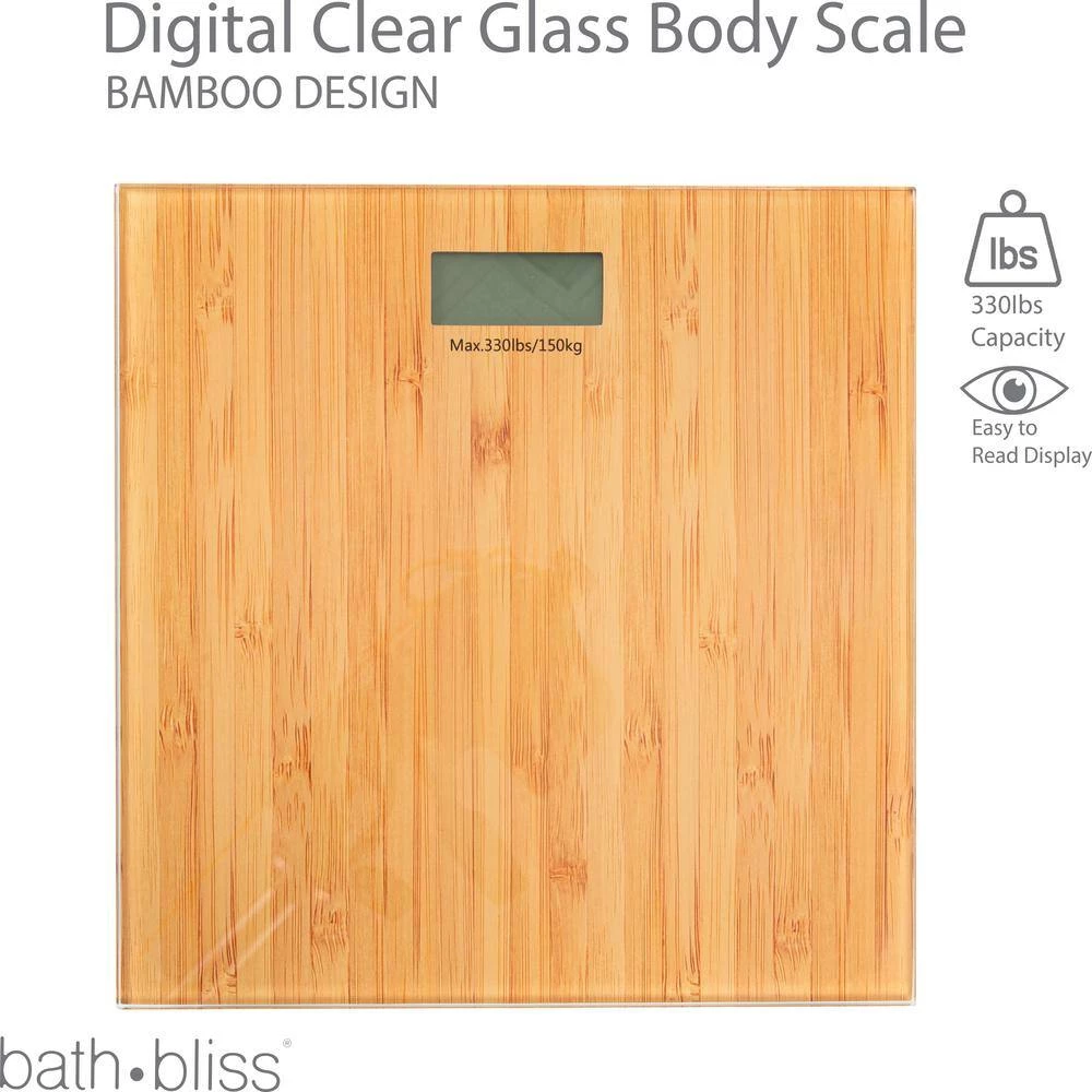 The Bath Bliss Digital Glass Scale accurately displays your weight clearly on the screen. The digital numbers are easy to read, and the tempered glass top is durable. With its stylish and modern design, this scale fits with any room decor. The ultra slim construction makes it easy to slide out of the way under your bed, dresser, or vanity. This scale can measure up to 330 lbs. (150 kg). This is the scale that you need in your home.