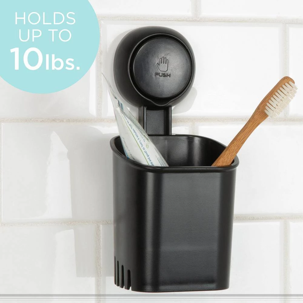 Keep your toothbrush and toothpaste at hand with the Bath Bliss Gel-Suction Toothbrush Holder. A convenient caddy with gel power suction can be placed on any smooth surface. Strong enough to hold up to 10lbs and perfect caddy size for your necessities. Hang on your bathroom mirror for easy access to your toothbrush. Designed to mount onto your wall without making holes, this holder is installed by just the press of the middle suction cup and releases with the same procedure. The gel suction works best on ceramic tile, glass, metal, and wood requiring no tools to install.