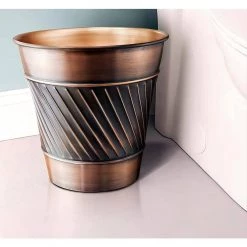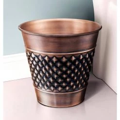 Monarch Abode Handcrafted Crest and Wave Embossed Metal Wastebasket (Antique Copper Finish)