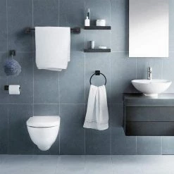 ACEHOOM Bathroom Freestanding Toilet Paper Holder Stand with Reserver in Matte Black