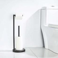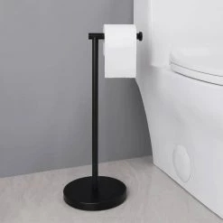 ACEHOOM Freestanding Stainless Steel Toilet Paper Holder in Matte Black