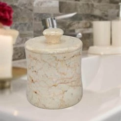 Creative Home Spa Hand Carved Cotton Ball Holder in Champagne Marble