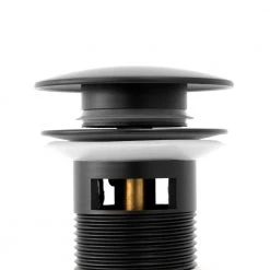 Eisen Home Pop Up Drain Assembly with Cap with Overflow for Under Mount Installation in Matte Black