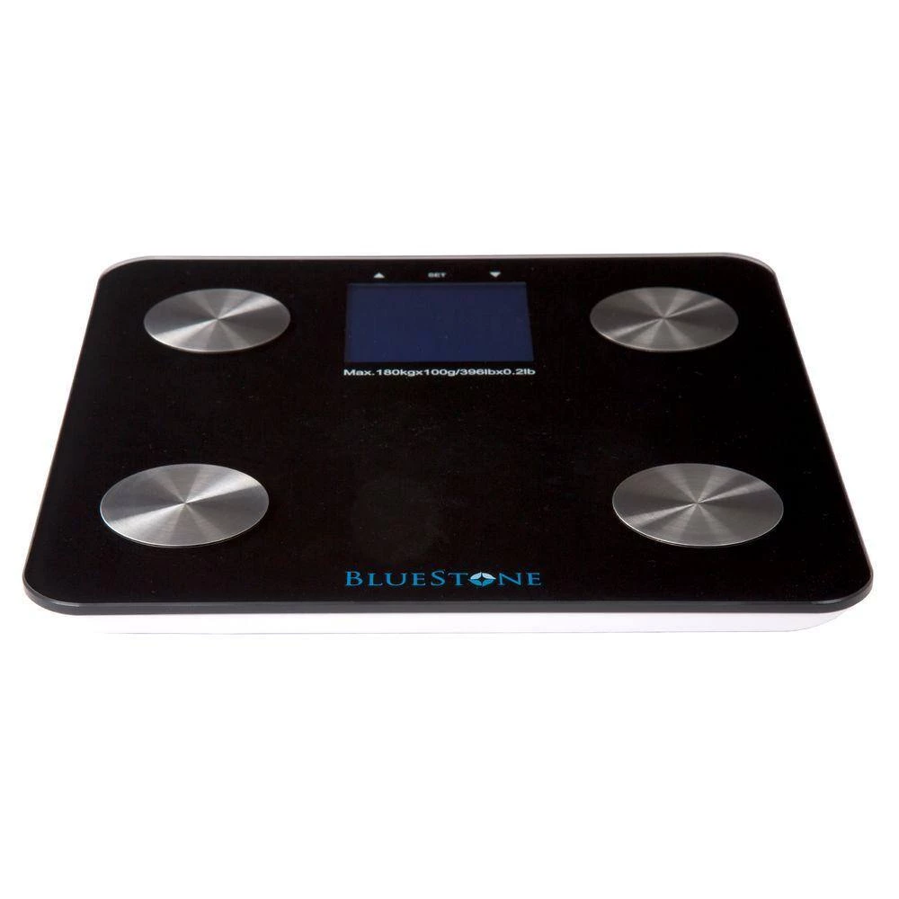 The Bluestone Digital Body Fat Bathroom Scale uses a high precision strain gauge sensor to accurately measure your body weight, body fat percentage, body water percentage, body muscle percentage, bone mass substance, BMI and Calorie Count. It automatically turns on and off when you step on or off the scale. A large easy to read LCD display also features a blue backlight, allowing for easy viewing. The scale has a maximum weight capacity of 396 pounds and features both an overload and low battery indicator. This sleek tempered glass scale creates a modern design that will complement a variety of different bathroom decor styles.