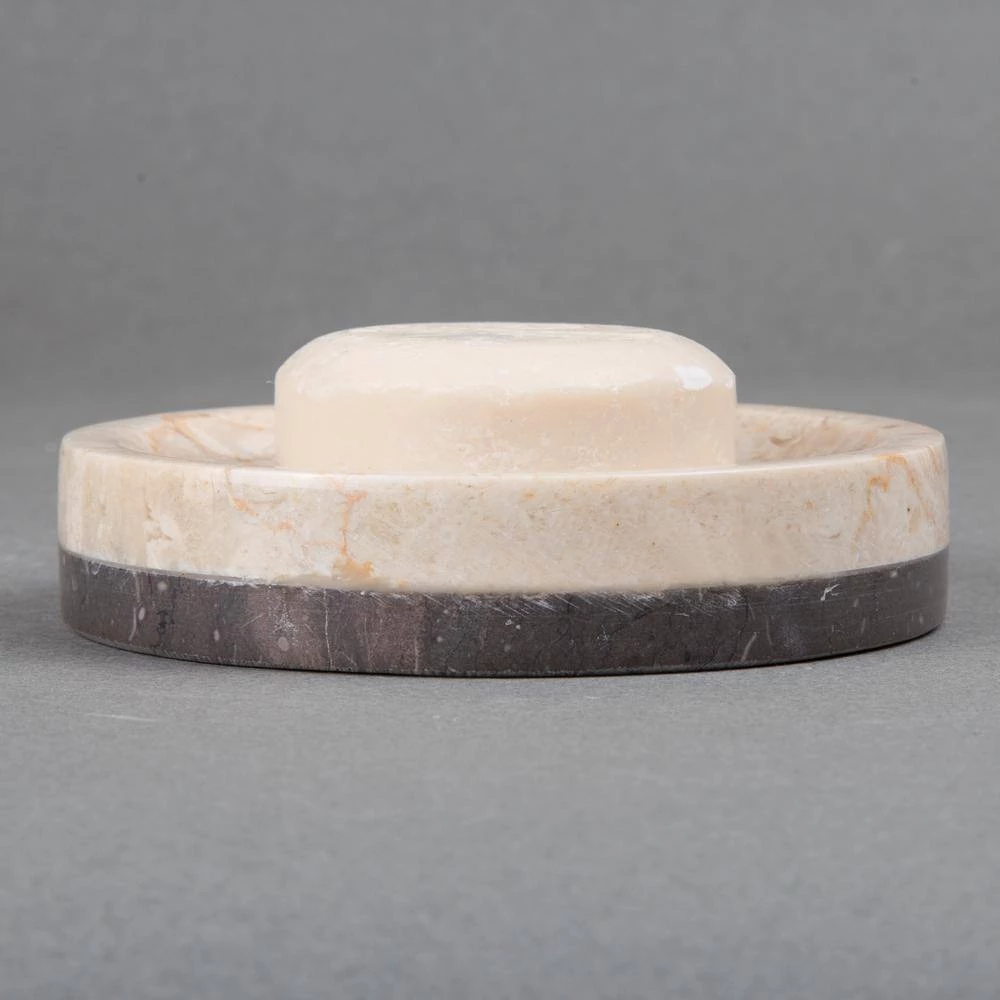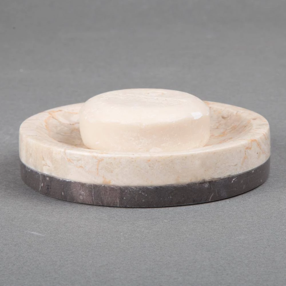 beautiful Inverary Banded soap dish works well with contemporary and traditional decor. Made of champagne colored natural marble. Easy to clean.