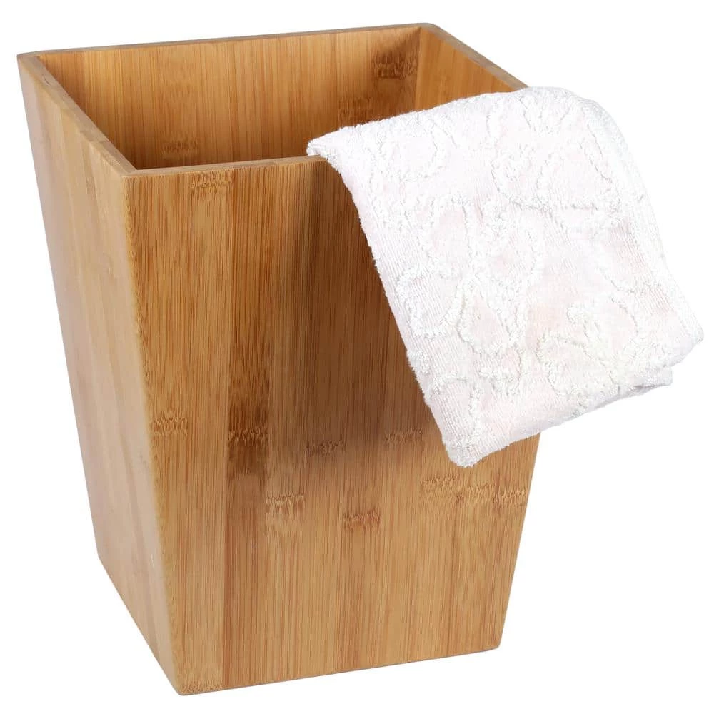 Ecologically compatible. Made of natural renewable bamboo. Durable construction provides long lasting quality. Dimension: 9-5/8 in. x 9-5/8 in. x 11-5/8 in. H. Stronger than most hardwoods, yet lightweight. Bamboo doesn’t absorb water. Perfect bathroom waste can, recycle bin or bedroom waste basket. Great for the bathroom, office, living room and more.