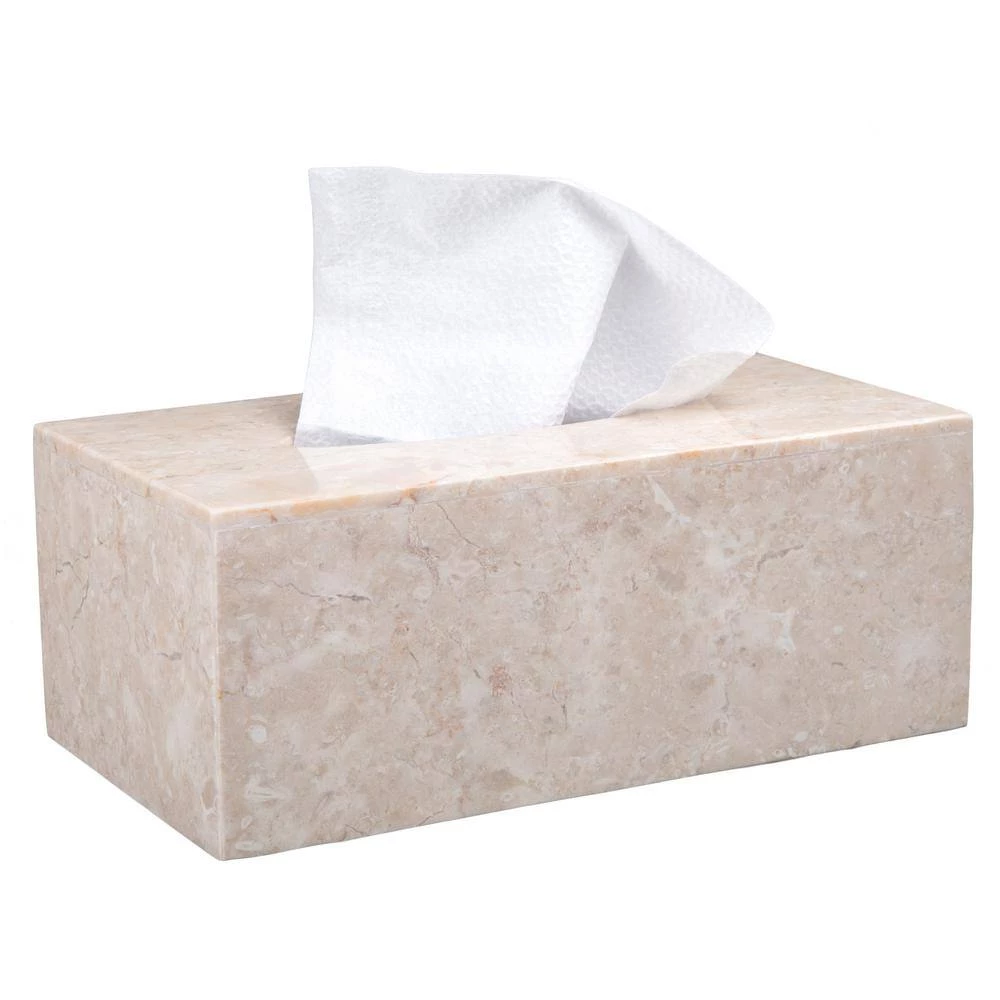 This genuine champagne marble stone rectangular tissue box holder, cover is made of genuine natural marble stone from East Java Boroman mountain. Dimensions: 9-1/2 in. L x 5-1/4 in. W x 3-1/2 in. H. Hand crafted and polished from genuine natural marble, any color variation is its own uniqueness. Durable, heavy weight natural marble keeps holder sturdy and increases stability. Easy to clean, hand washing recommend.