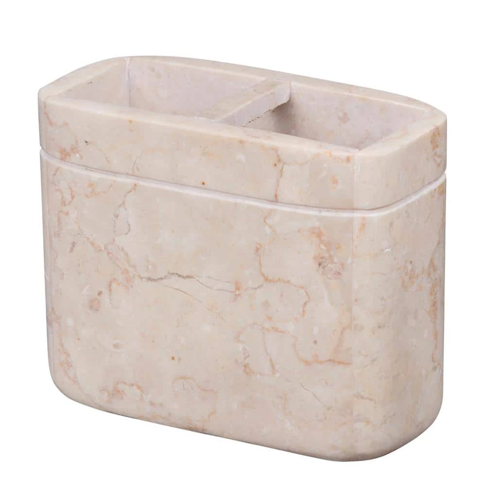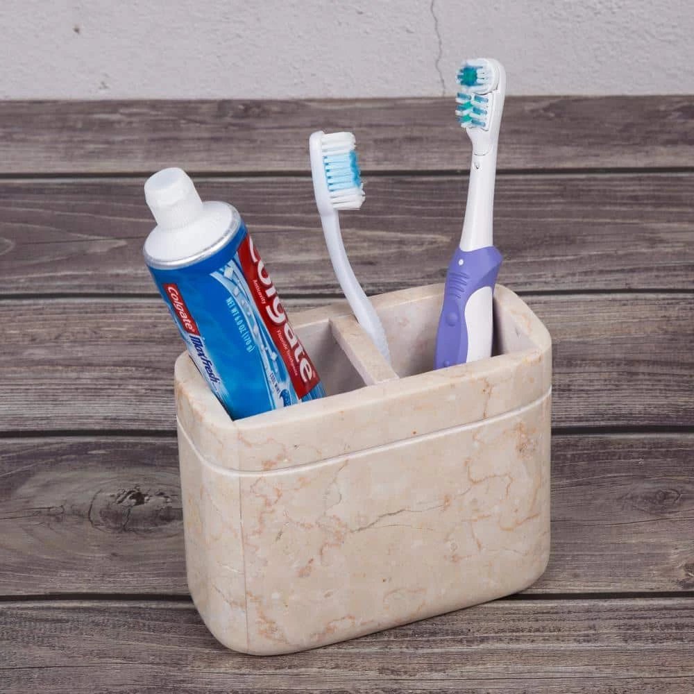 Give your home a taste of charm and elegance with our marble bath products. This great marble toothbrush holder to match your traditional or contemporary home decor. Hand crafted and polished from genuine natural marble, last long time, any color variation is its own uniqueness. Space-efficient, 2 wide compartments can organize your electric toothbrush and toothpaste. Durable, heavy weight natural marble keeps holder sturdy and increases stability.