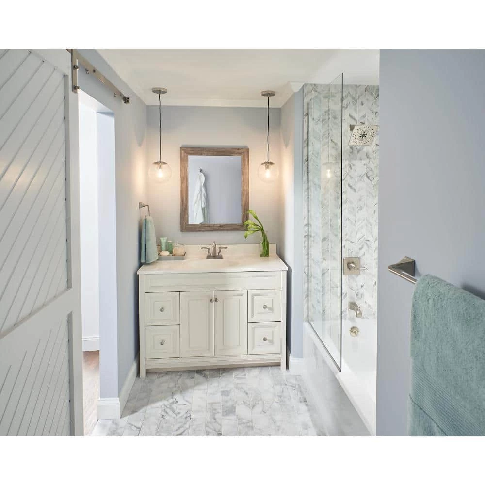 - SpotShield technology resists water spots, fingerprints and stains so the bath hardware stays cleaner longer