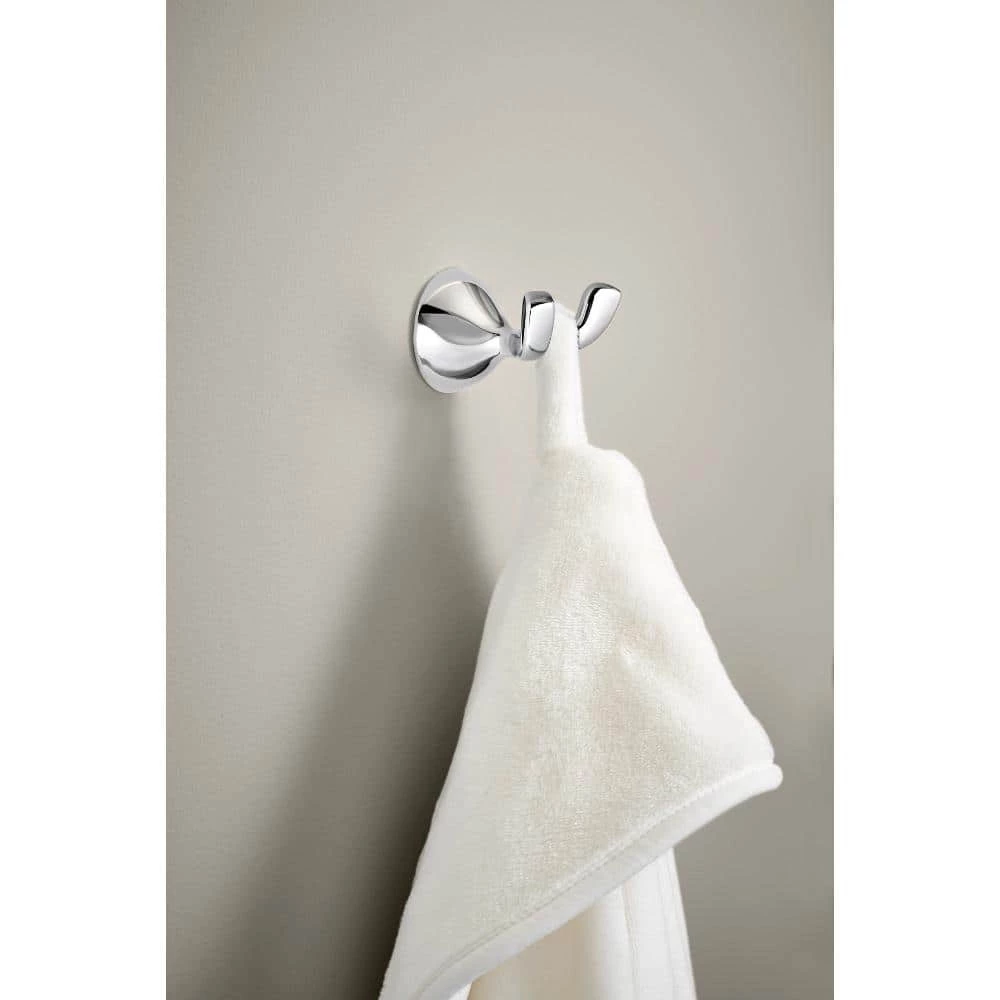 Simple, yet cleanly defined curves make the Foundations bath collection a well-suited accent to any bathroom decor. This double robe hook compliments your bathroom perfectly with its smooth and seamless lines. Designed with a clean look in mind, this collection will beautifully update your bathroom. Finish your look today with coordinating pieces from the Foundations collection (sold separately).