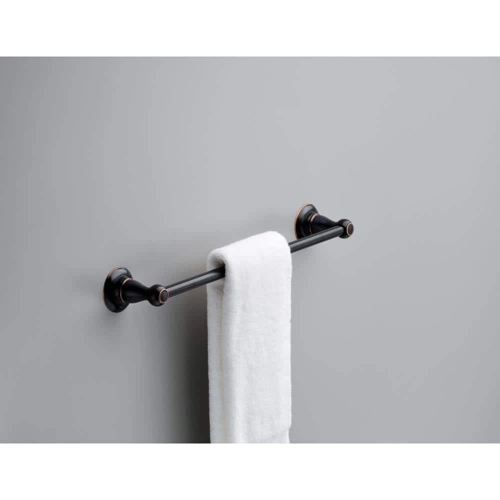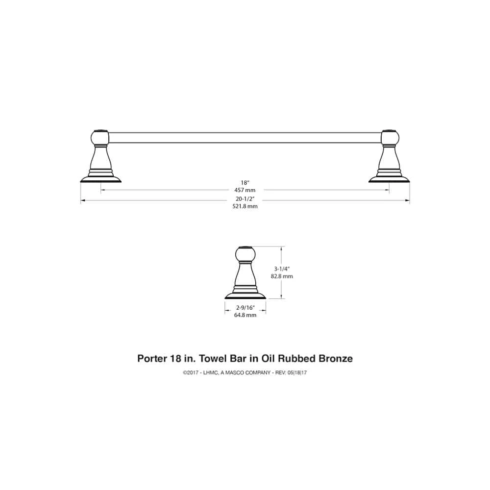 The tapered curves and graceful arcs of the Delta Porter Bath Collection are reminiscent of classic architectural forms. The Delta Porter 18 in. towel bar is a perfect fit for any home with its blend of casual and traditional design elements. Give your bathroom an updated, refreshed look with coordinating faucet, shower head and bathroom accessory options (sold separately).