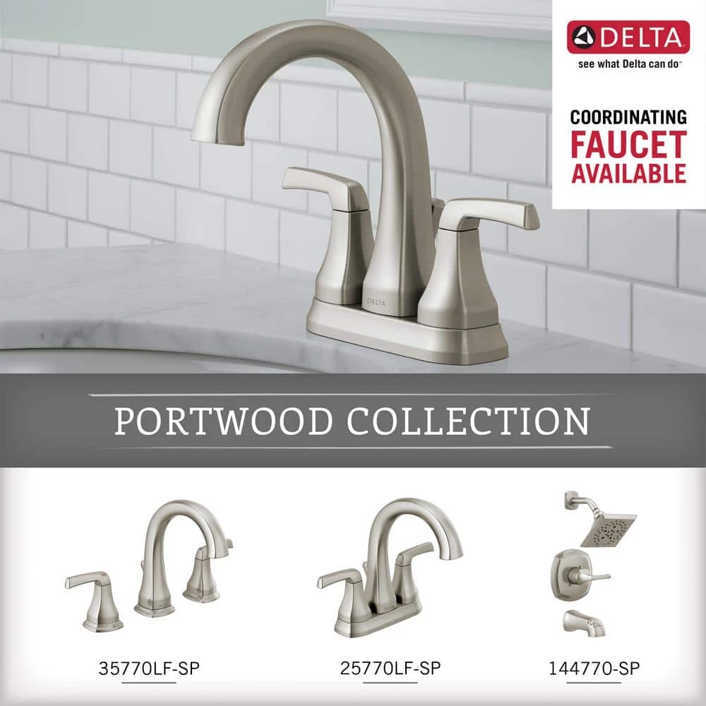 - SpotShield technology resists water spots, fingerprints, and stains so the bath hardware stays cleaner longer
