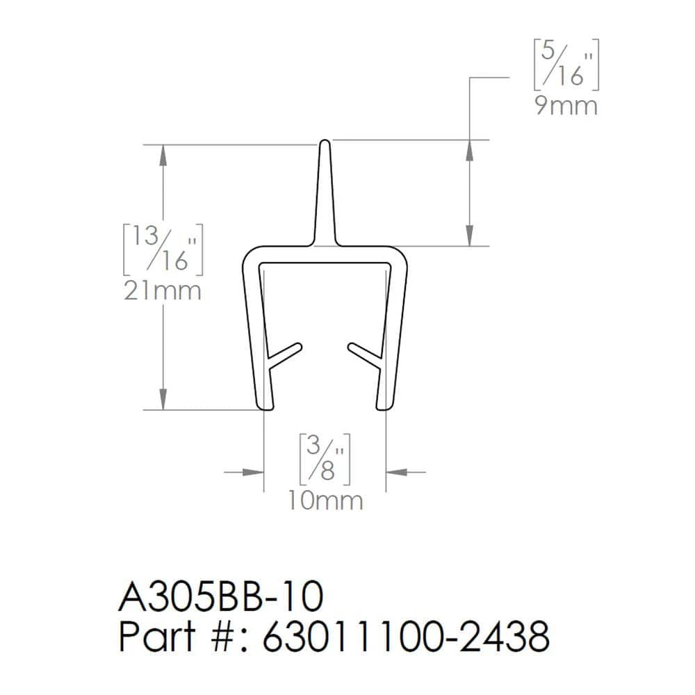 DreamLine Vinyl Seal with a Flexible Fin (Part #A305BB-10). Will replace worn or damaged vinyl and help ensure water splashes are contained. Manufactured to fit all DreamLine Unidoor doors.