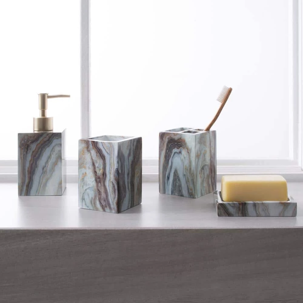 Update your bathroom with the Elle Decor Square Agate Toothbrush Holder. It is a modern, stylish, and functional accent for your bathroom. The Toothbrush holder is easy to use and sits nicely on your bathroom countertop. The 3 compartments are perfect for holding your toothbrushes and toothpaste next to the sink. Get the entire Square Agate collection and make a statement in your bathroom.