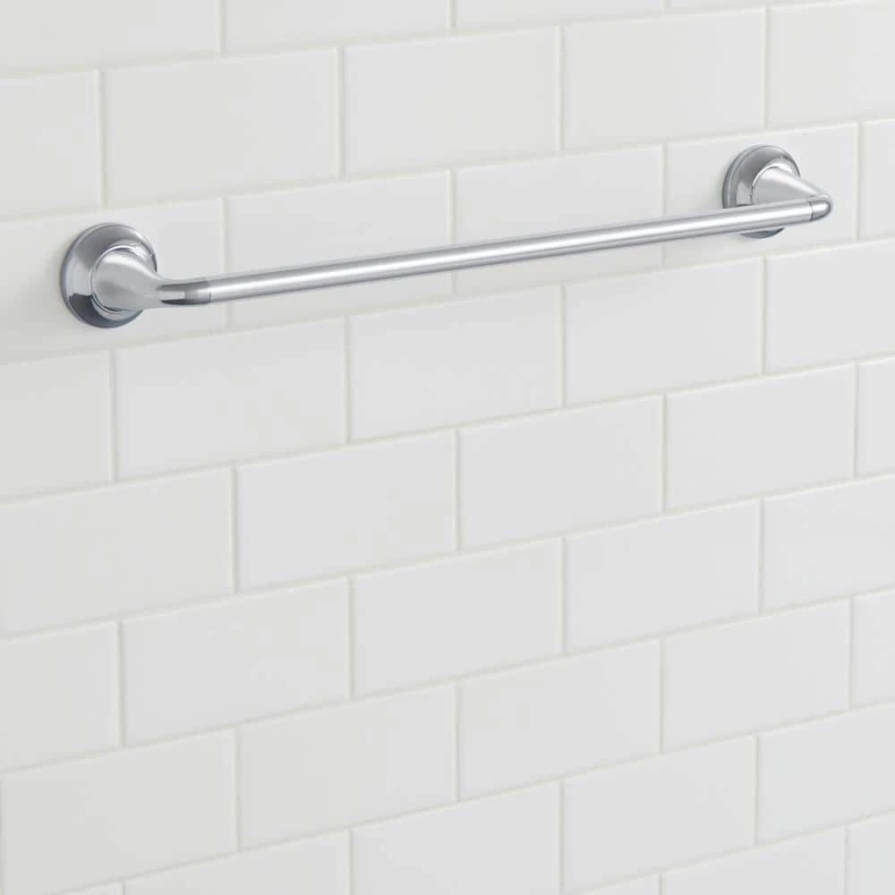 With the classic chrome finish, this Constructor 18 in. Towel Bar is designed to match nearly any home decor. The aluminum and zinc construction provides a bright and attractive ring that is built to last. All mounting hardware is included for a quick and easy install.