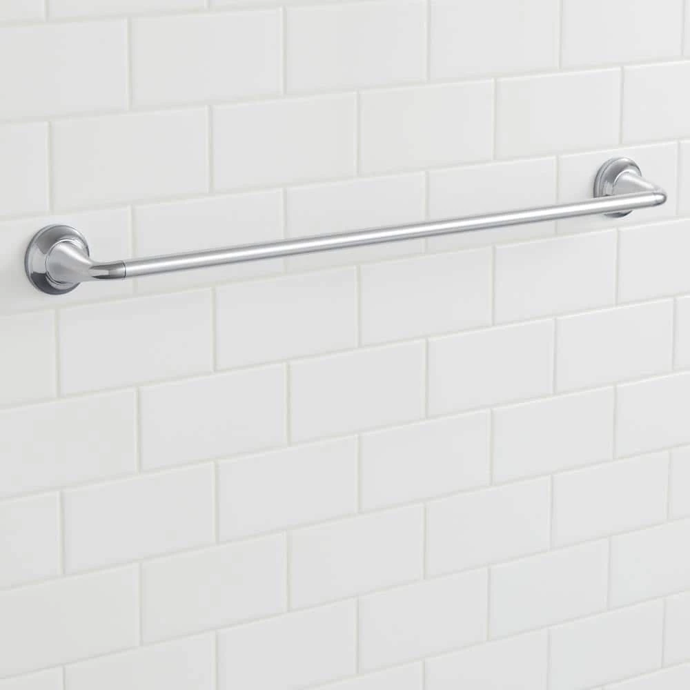 The Glacier Bay Constructor 24 in. Towel Bar in Chrome has a classic design that will complement a wide variety of bathroom decor. Combining elegance with durability, the built-to-last zinc construction has an attractive chrome finish for a bright, fresh look. Easy to install with the included hardware and plastic anchors, pair with other pieces from the Constructor Collection for a complete, polished look.