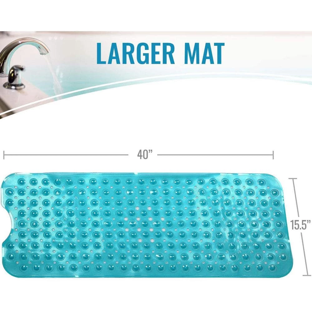 - Large bath mat easily covers entirety of shower or tub floor measuring 40 in. x 15.5 in.