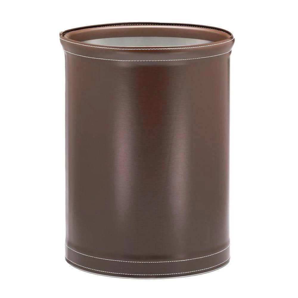 The Grant Signature Home Stitched Collection features accent bands with decorative stitching. This 13 Qt. Oval Waste Basket, covered in rich chocolate brown leatherette vinyl, offers refined elegance. Contrast stitching adds a distinctive tailored finishing touch.