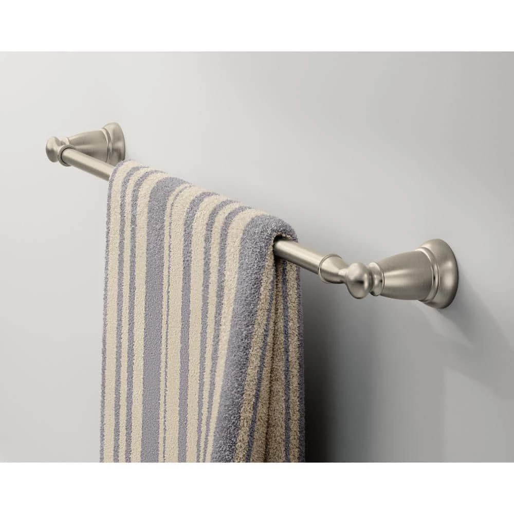 The Banbury 24 in. Towel Bar highlights a timeless nostalgia for traditional versatility and sets a tone that is both classical and sensible. With ample length to dry or display a pair of towels, this item can be a key focal point in the bath. Its length creates a useful space that helps carry the design motif through the bath.