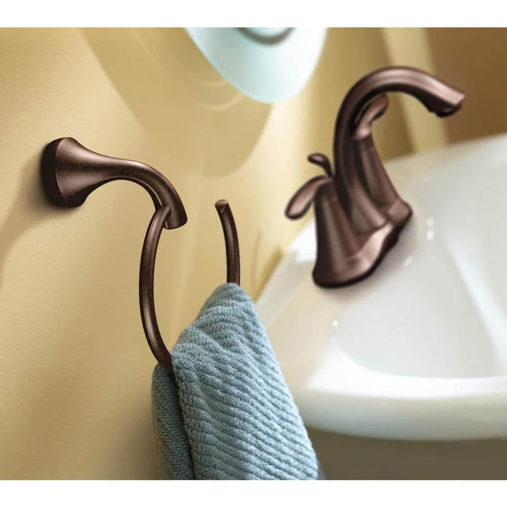 The MOEN Eva Towel Ring in Brushed Nickel adds the finishing touch to your bathroom decor. This towel ring constructed of a zinc base and featuring a brushed nickel finish is sure to add timeless style to your bathroom. Complete the look of your bath with coordinating Eva faucets and accessories.