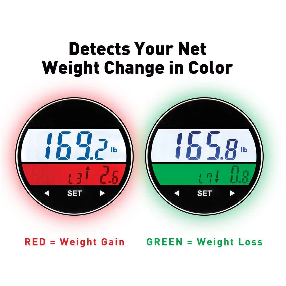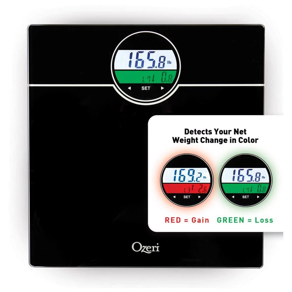 - Accurate weight tracking with 7 day memory by measuring your weight once a day, the Ozeri WeightMaster empowers you to instantly see how your current weight changes from the previous day (e.g. -0.8 lbs.), the average of the last 3 days (e.g. -1.1 lbs.) and the previous week (e.g. -1.8 lbs.), all displayed on an intelligent LCD with color alert technology