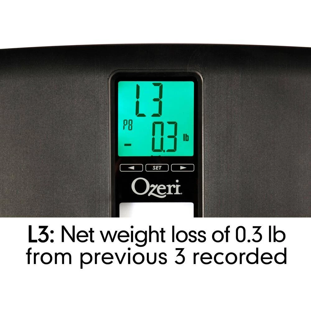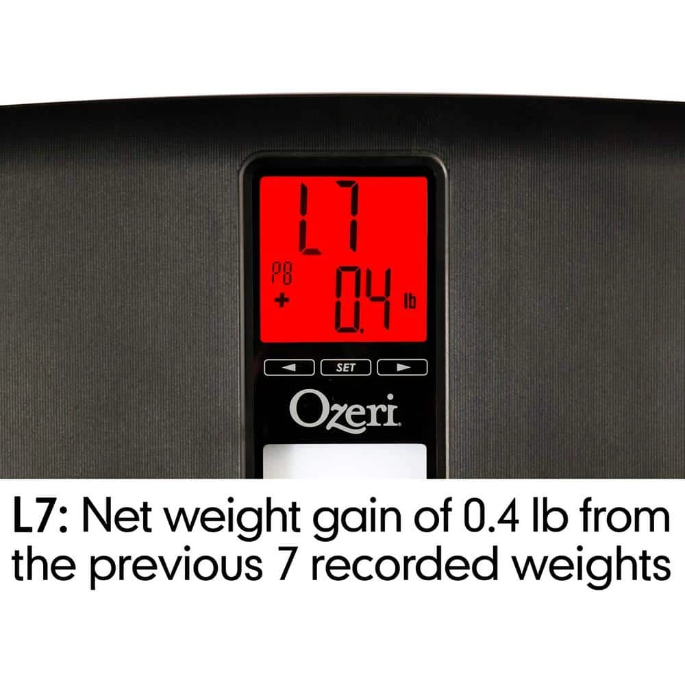 - Accurate weight tracking with 30 day memory by measuring your weight once a day, the Ozeri WeightMaster II empowers you to instantly see how your current weight changes from the previous day (e.g. -0.8 lbs.), the average of the last 3 days (e.g. -1.1 lbs.), the previous week (e.g. -1.8 lbs.) and the previous 30 days (e.g. -5.8 lbs.), all displayed on an intelligent LCD with color alert technology
