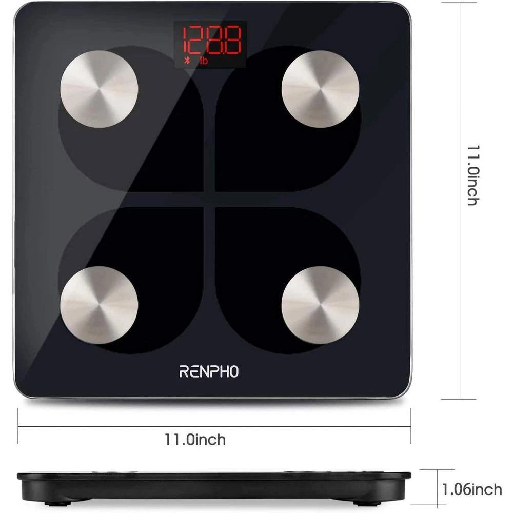 Why do you need a Renpho body fat scale? Renpho body fat scale utilizes Bio-electrical Impedance Analysis (BIA) to calculate 13 key body composition metrics, it can give you an overview of your body and track your daily, weekly and monthly progress. These are far more than a traditional weight scale that can offer. What’s more, Renpho app can syncs the data to your favorite fitness apps like Samsung Health, Apple Health, Google Fit and Fitbit app. Have a fitness or health goal? Let Renpho helps you keep motivated toward the goal. Easy setup Smart app syncs with most popular fitness apps such as Samsung Health, Fitbit, Apple Health and Google Fit. App available for Apple Watch. 13 essential measurements. The scale shows body weight only. All 13 body composition data including weight, BMI, body fat percentage will show and store on smart devices via Renpho app. You can weigh yourself anytime without your phone. User Friendly App. Download Renpho app for free in App Store or Google Play. Renpho App works with Bluetooth 4.0 and above. High Quality Product. Auto calibration, high precision sensors measure in increments of 0.2 lb. /0.05 kg with 396 lbs/180 kg capacity. 4 highly sensitive electrodes, 3 x AAA batteries included. FCC, ROHS Certificated. Monitor your progress. Renpho connects with the apps to help you set goals, save historical data and track your daily, weekly and monthly progress.