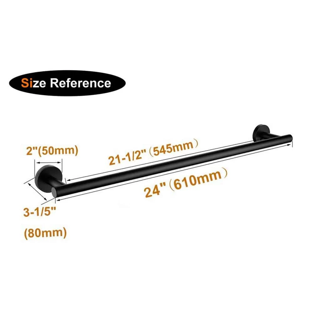 Matte Black Bath Towel Bar Single Bars Towel Rack Rod Classic Wall Mounted Stainless Steel Bathroom Towel Bar Toilet Kitchen Towel Shelf Single Layer,24 in.. Enduring, peaceful style brings a casual and graceful appeal to your remodeled room, never out of date and reliable. Round contemporary design gives option of mounting direction according to your using environment.