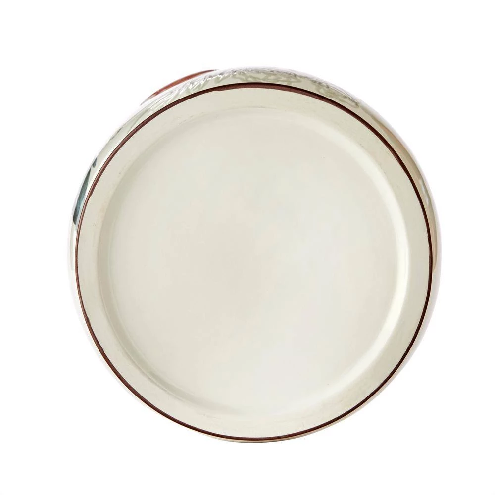 - Glazed ivory with a watercolor-like floral design and antique bronze trim