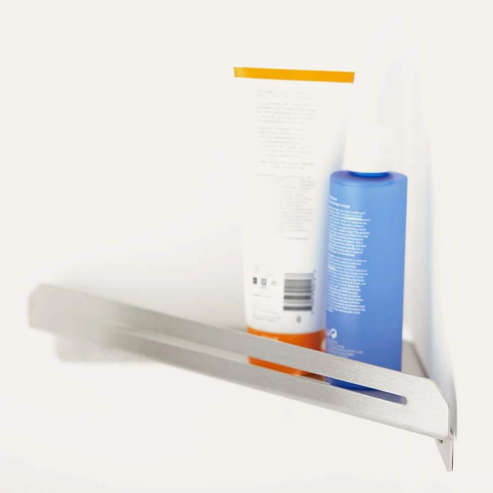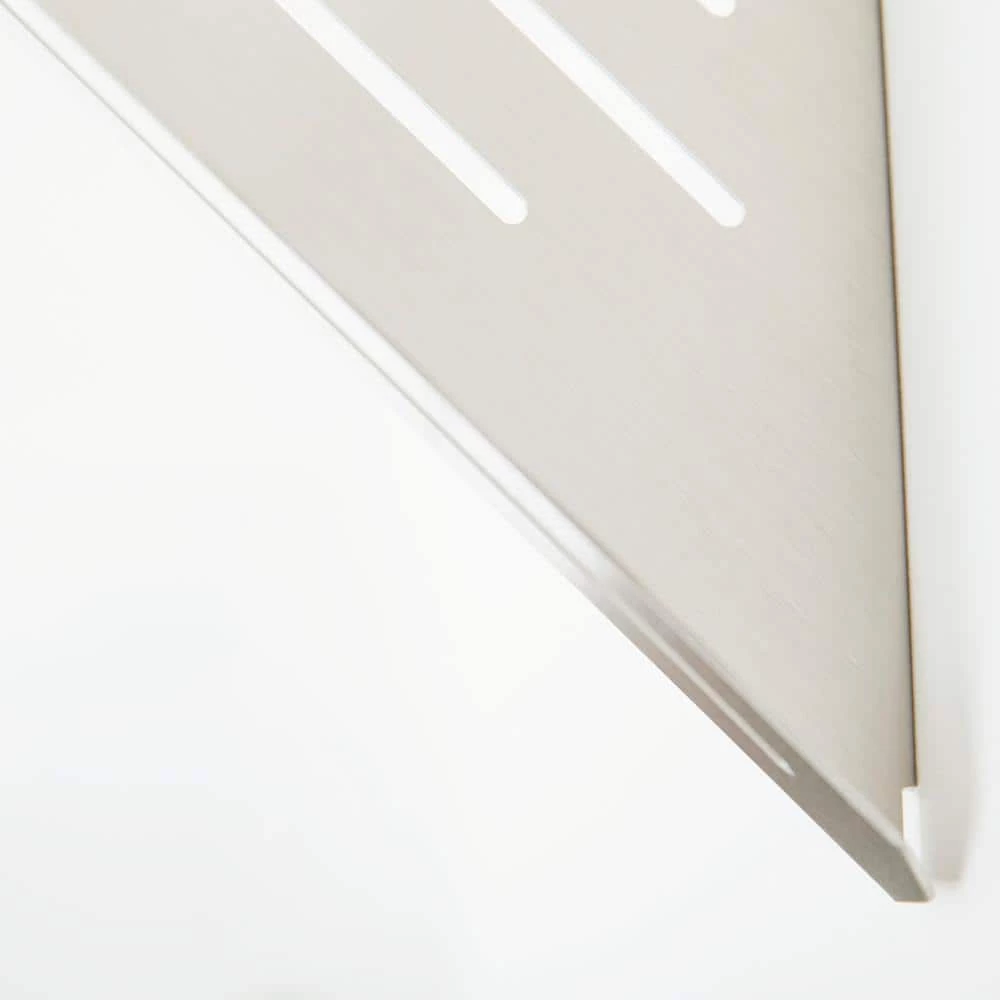Keep all of your bath necessities well organized and within reach with this space-saving Elegant Corner Shower Shelf. The corner shelf features a sleek floating style design that complements with any bathroom decor. It can be easily installed in the corner of your shower or bath when extra shelving or spacing would be beneficial. The corner shelf is crafted from durable, water-resistant #304 stainless steel and is thoughtfully designed with a lipped edge to keep items secure.