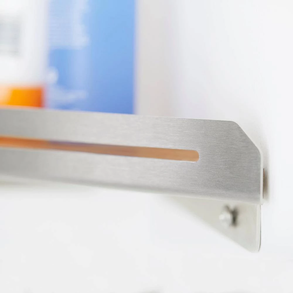 Keep all of your bath necessities well organized and within reach with this space-saving Elegant Corner Shower Shelf with a natural teak wood surface. The corner shelf features a sleek floating style design that complements any bathroom decor. It can be easily installed in the corner of your shower or bath when extra shelving or spacing would be beneficial. The corner shelf is crafted from durable, water-resistant #304 stainless steel and natural teak wood which is ideal for long lasting use. SEACHROME uses the finest first European quality Burmese Teak and is 100% heartwood grade. Each shelf has its own unique natural wood grain pattern.
