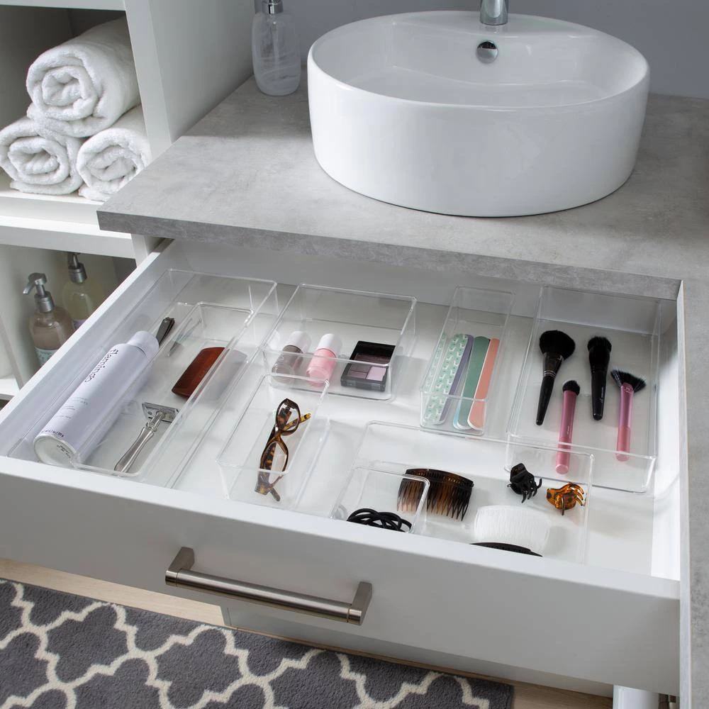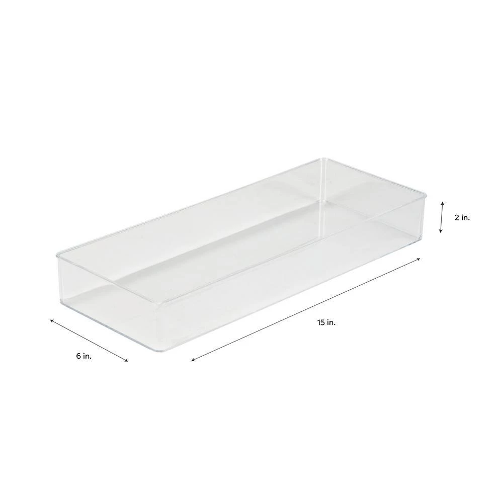 Organize your bathroom vanity or desk drawer with this Simplify Long Rectangular Drawer Organizer. It is the perfect size for desk accessories such as pens, pencils and note paper. It is also good for holding jewelry and cosmetics and brushes. The clear design makes items inside visible and easy to find. You can keep this transparent organizer bin on your desktop or countertop surface because it fits with any room’s decor. Organize the little things in life with the Simplify Drawer Organizer.