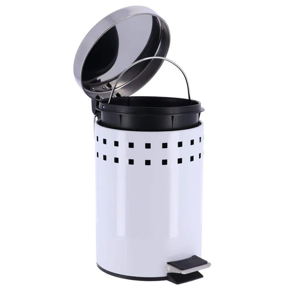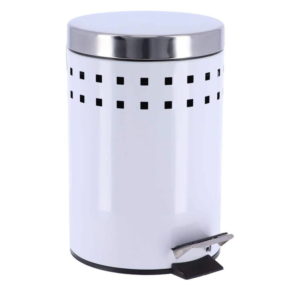 - For cosmetic products in your bathroom, this compact white round metal step trash can is ideal for your bathroom, toilet, kitchen or office