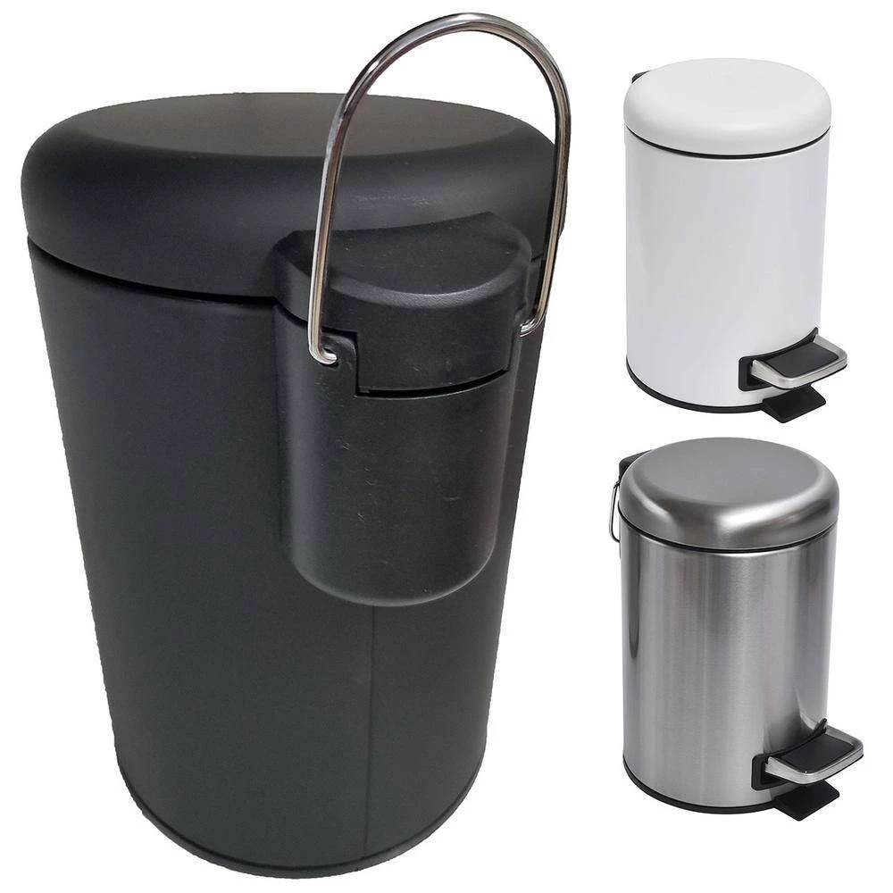 - STURDY CONSTRUCTION: with its rounded top lid, this solid black color waste basket will be the perfect trash can for your bathroom or office. 3 colors available : white, mat black or stainless steel