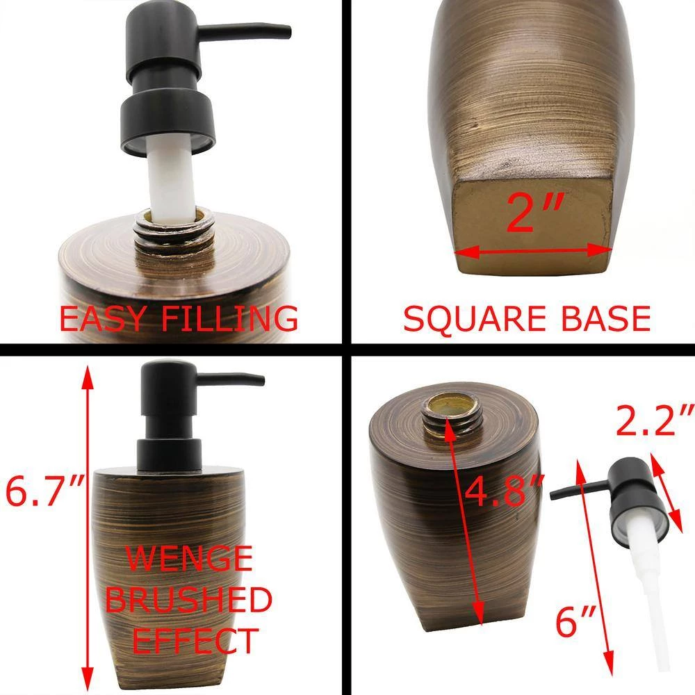 - Enjoy the sturdy construction of this set of 4 pieces, this bathroom set is made of durable polyresin which is rust free, the bottom is textured to avoid any slippage from the counter top or from the floor