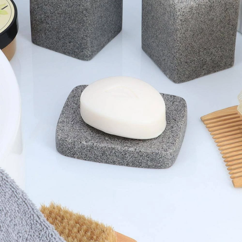 - Gray stone texture adds a sense of elegance coupled with contemporary charm, making this bathroom set a great addition
