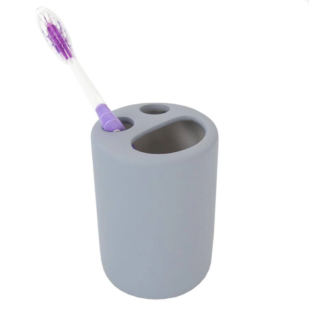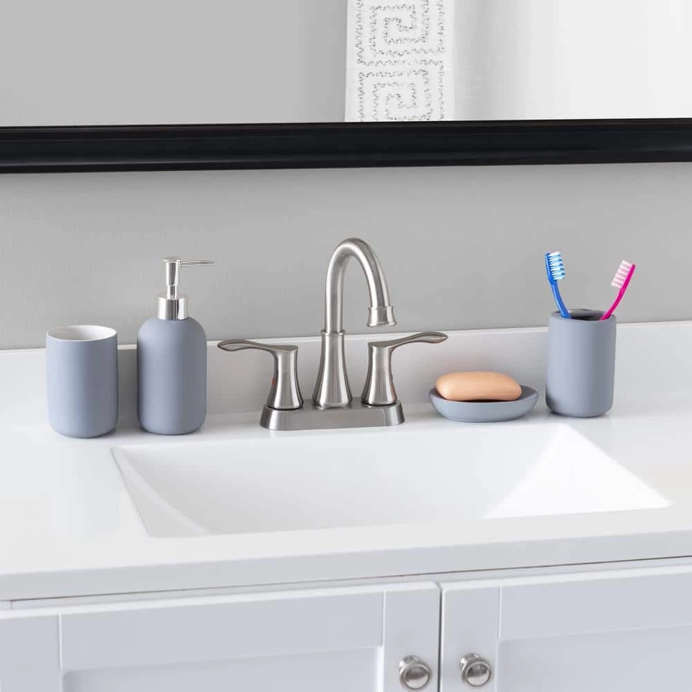 - Fully functional 4 piece bath ensemble: 4 piece rubberized ceramic bathroom accessory set adds style and function to the counter or vanity with its rubber ceramic material