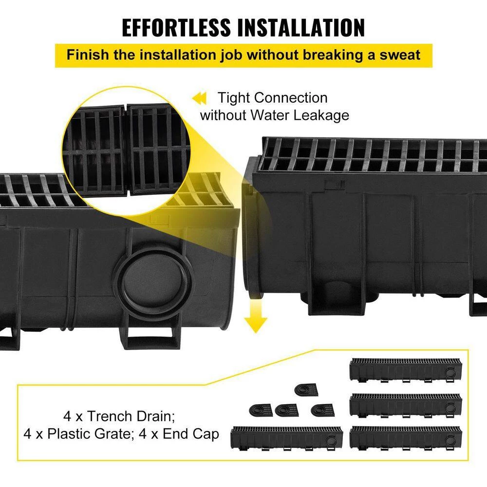 - Package Content:4 x Trench Drain,4 x Plastic Grate,4 x End Cap