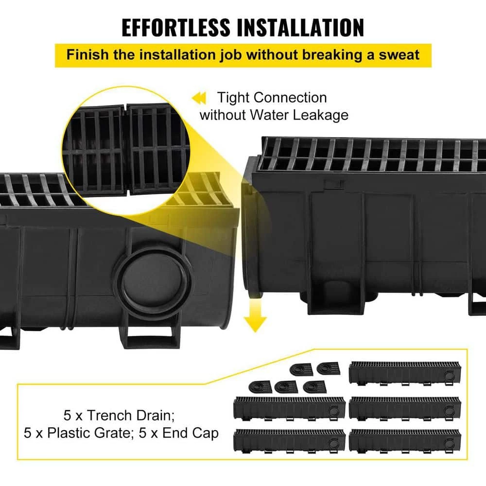 - Package Content:5 x Trench Drain,5 x Plastic Grate,5 x End Cap